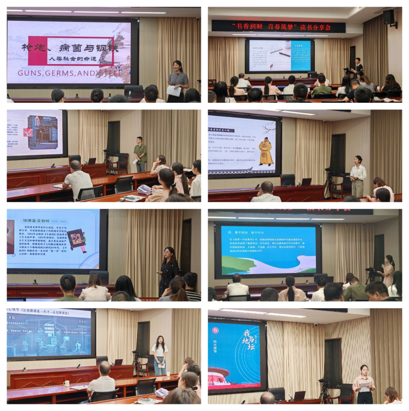 活动现场,8名读书分享人带着精心挑选的书籍,依次分享《枪炮、病菌与钢铁》《三十六计》《苏东坡传》《明朝那些事儿》《平面国》《杀死一只知更鸟》《献给阿尔吉侬的花束》《我与地坛》等经典书籍,为我们开启一扇扇通往不同精神世界的窗口,并结合自身岗位工作和成长历程,分享阅读过程所带来的感悟以及收获,现场氛围专注投入,不断响起阵阵掌声。