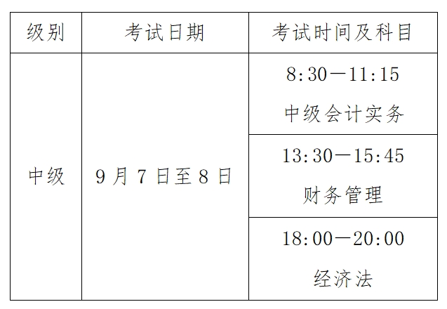 中级资格考试于2024年9月7日至8日举行,共2个批次。《中级会计实务》科目考试时长为165分钟,《财务管理》科目考试时长为135分钟,《经济法》科目考试时长为120分钟。考试时间、批次如有调整,将另行通知。